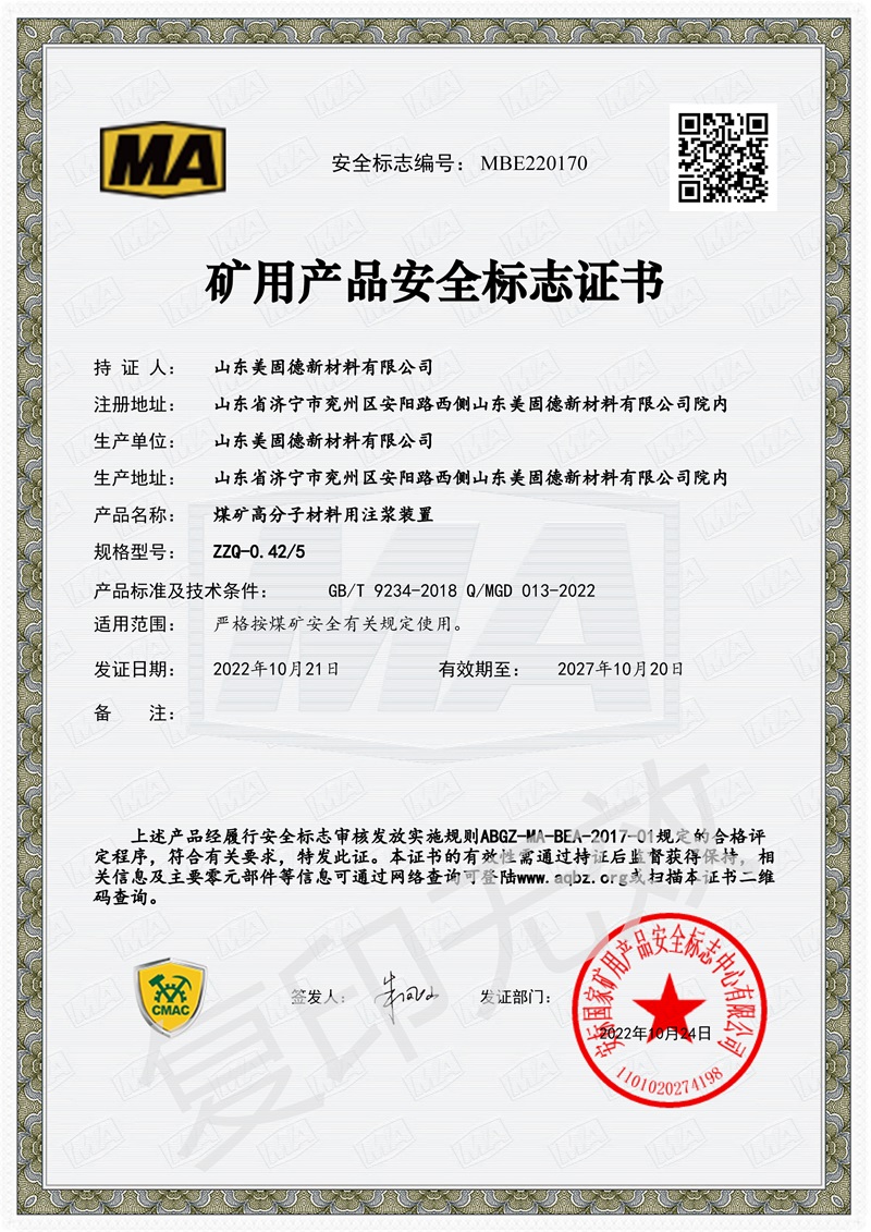 山東美固德新材料有限公司為高新技術(shù)企業(yè),坐落于中國工業(yè)強區(qū)、大禹定九州之地的山東省級工業(yè)園-兗州化學助劑產(chǎn)業(yè)園。公司2011年始建于青島,2016年為濟寧市重點招商項目落戶于兗州,公司專注于為煤礦安全生產(chǎn)提供可靠的礦用化學材料和解決方案。公司2018年同青島科技大學(原青島化工學院)高分子科學與工程學院簽訂技術(shù)合作協(xié)議,分別在兗州和青島設立了研發(fā)實驗室和應用發(fā)展實驗室,并建立了研究生實踐基地。2021年3月12日與中國聚氨酯協(xié)會特聘專家團隊簽訂了戰(zhàn)略合作協(xié)議,致力于聚氨酯高端領域的配方設計、生產(chǎn)及應用,為生產(chǎn)優(yōu)質(zhì)的產(chǎn)品提供強有力的技術(shù)保障。