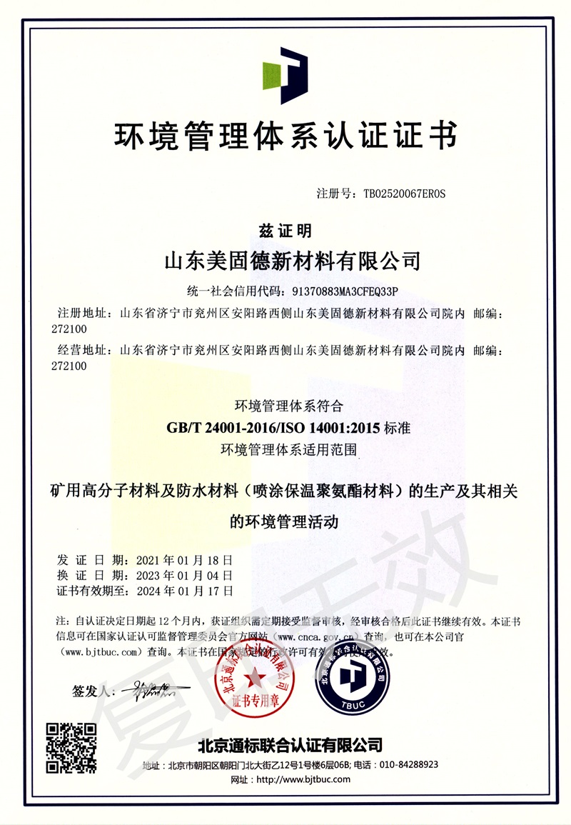 山東美固德新材料有限公司為高新技術企業(yè),坐落于中國工業(yè)強區(qū)、大禹定九州之地的山東省級工業(yè)園-兗州化學助劑產業(yè)園。公司2011年始建于青島,2016年為濟寧市重點招商項目落戶于兗州,公司專注于為煤礦安全生產提供可靠的礦用化學材料和解決方案。公司2018年同青島科技大學(原青島化工學院)高分子科學與工程學院簽訂技術合作協(xié)議,分別在兗州和青島設立了研發(fā)實驗室和應用發(fā)展實驗室,并建立了研究生實踐基地。2021年3月12日與中國聚氨酯協(xié)會特聘專家團隊簽訂了戰(zhàn)略合作協(xié)議,致力于聚氨酯高端領域的配方設計、生產及應用,為生產優(yōu)質的產品提供強有力的技術保障。